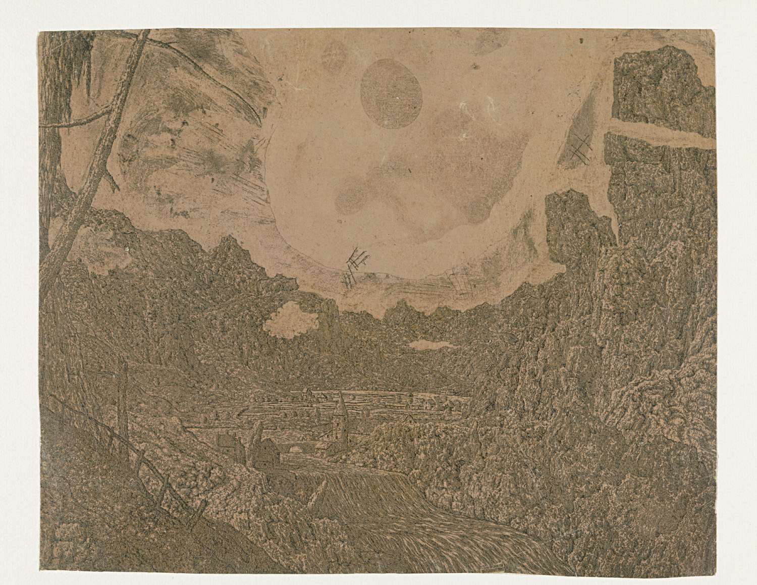 Rotsachtig landschap met wandelaar, eerste versie