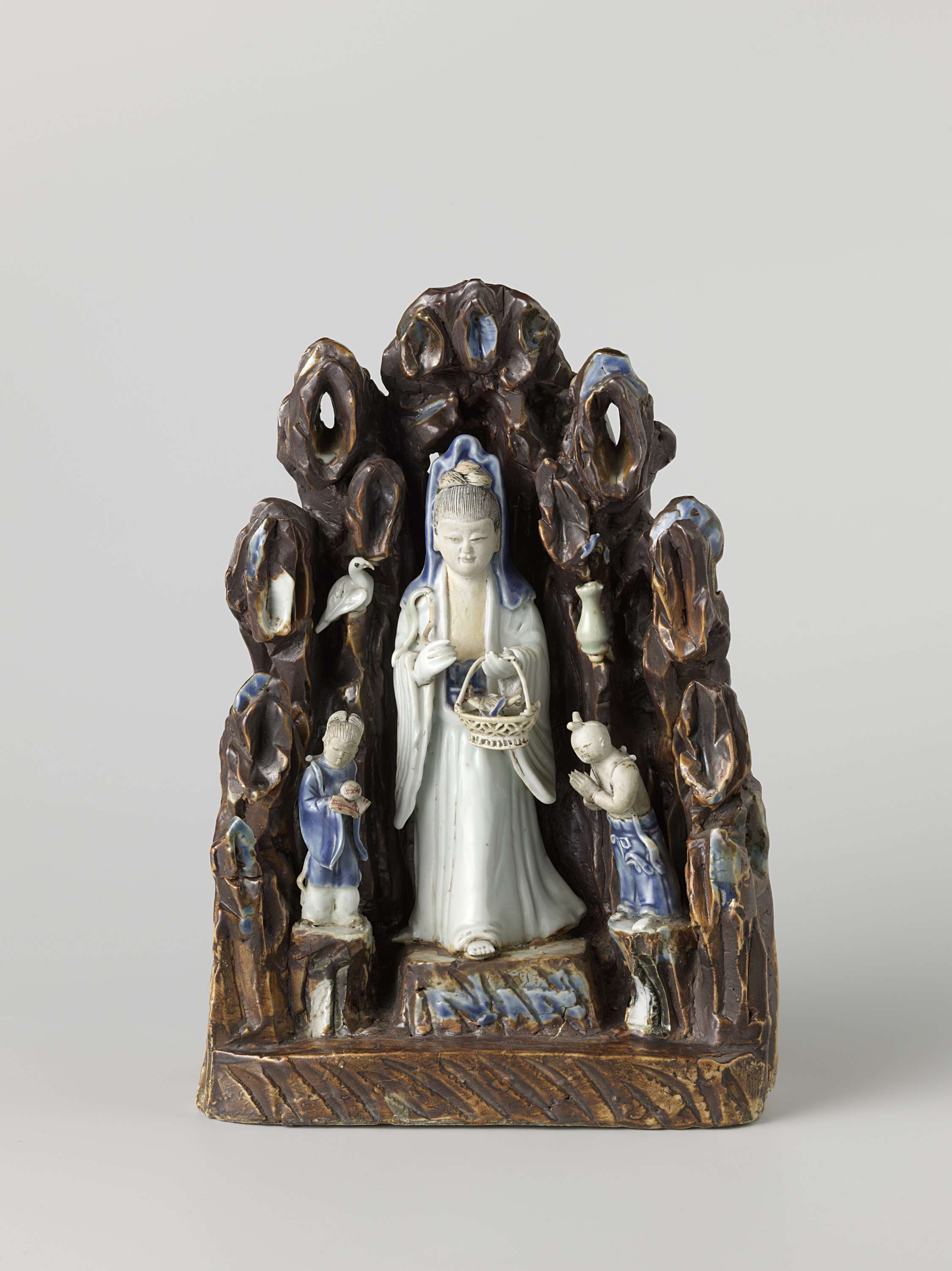 Zittende Guanyin met een kind, begeleid door de Drak...