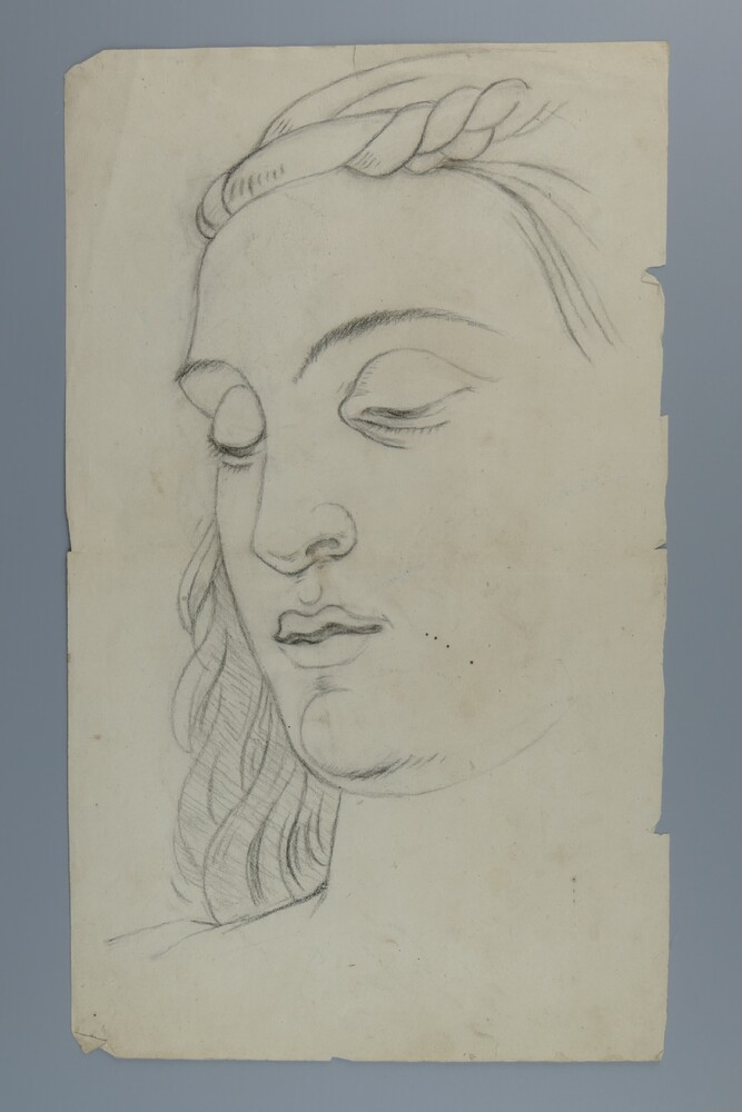 Tekening voorstellende studie van vrouwengezicht, ge...
