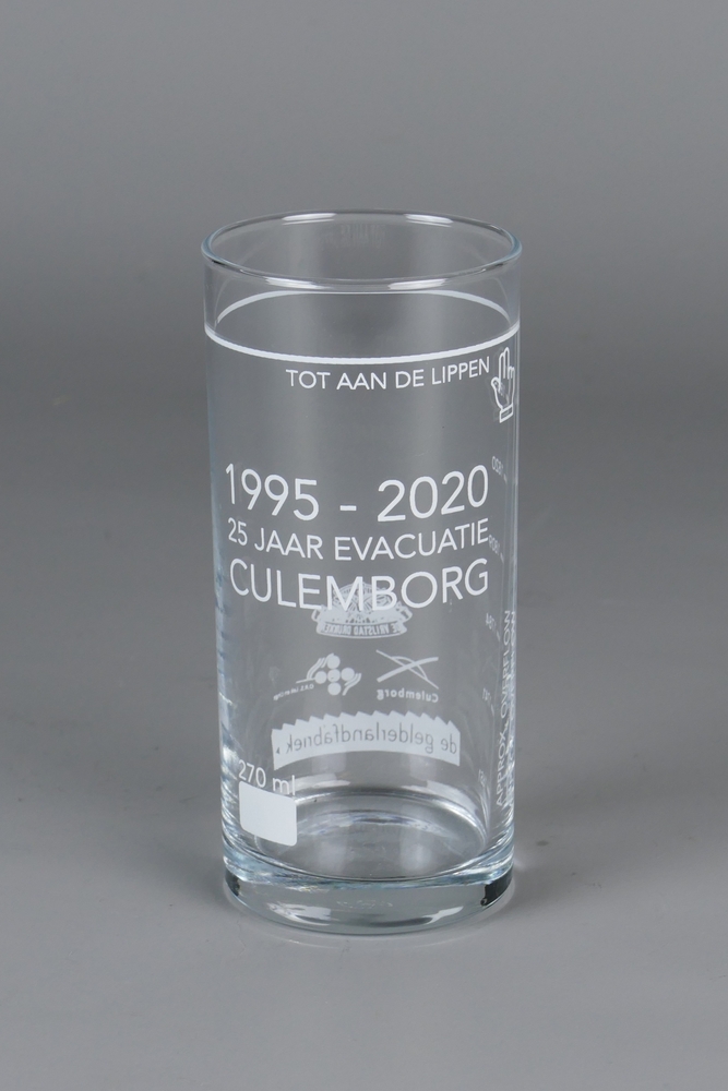 glas met opdruk, ter herdenking van de evacuatie te ...