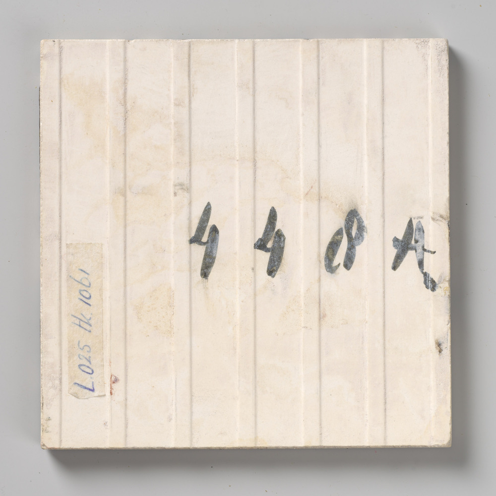 tegel van aardewerk met tinglazuur, voorstellende: h...