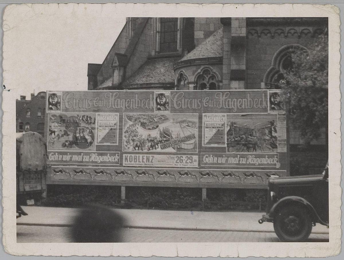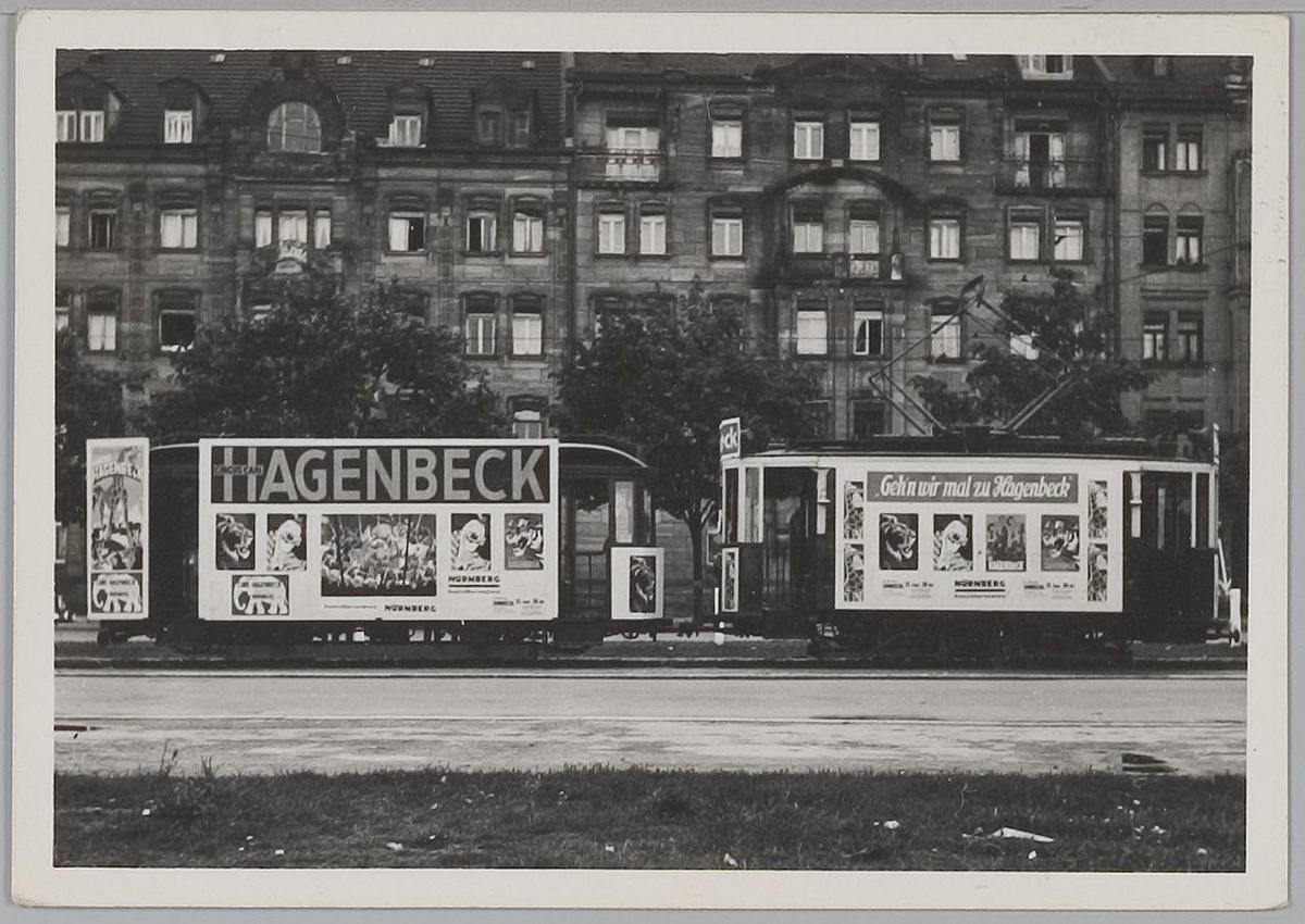 Trams met affiches Circus Carl Hagenbeck. Nürnberg