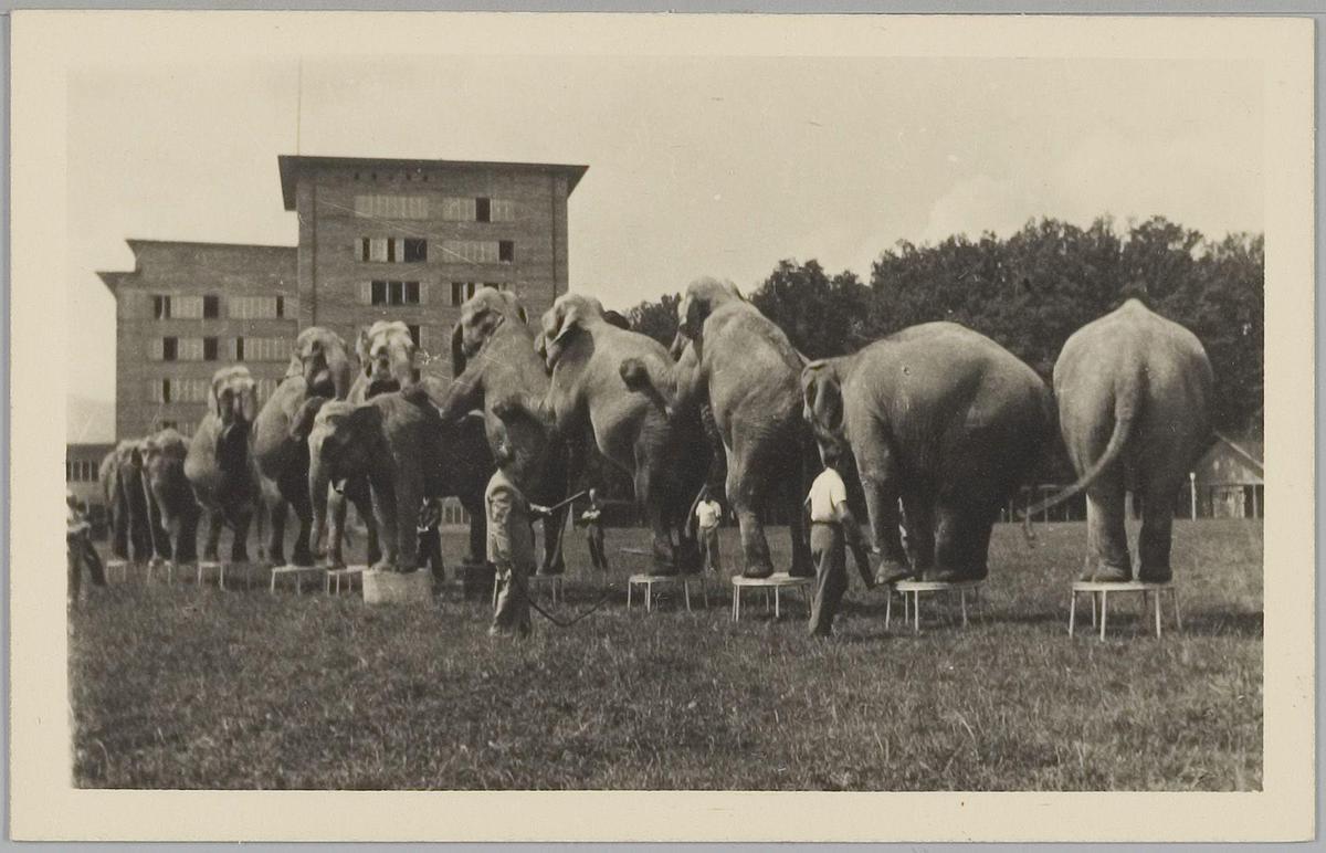 Circus Knie. Ongeveer 1945. Olifanten van Sarrasani
