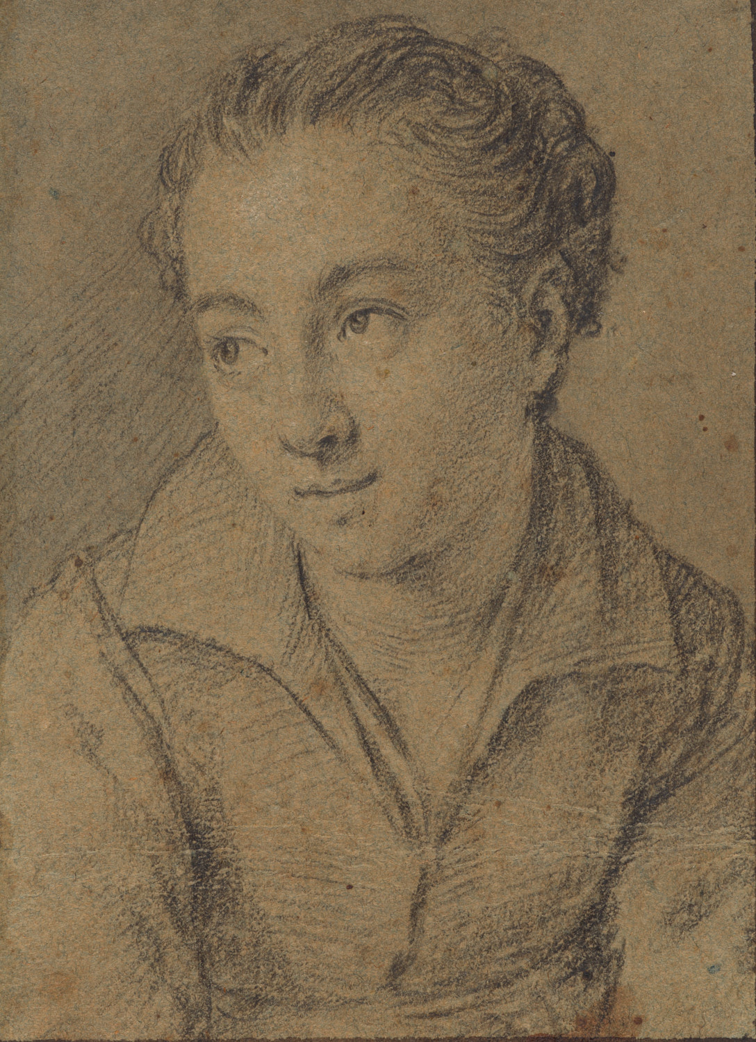 Hoofd van een omhoog kijkende jonge man