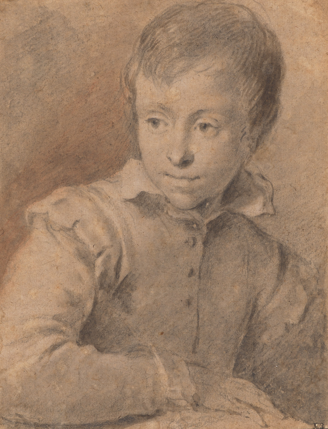 Een jongen met neergeslagen ogen