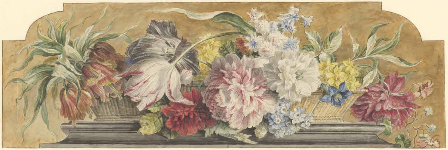 Ontwerp voor een bovendeurstuk met een bloemenmand
