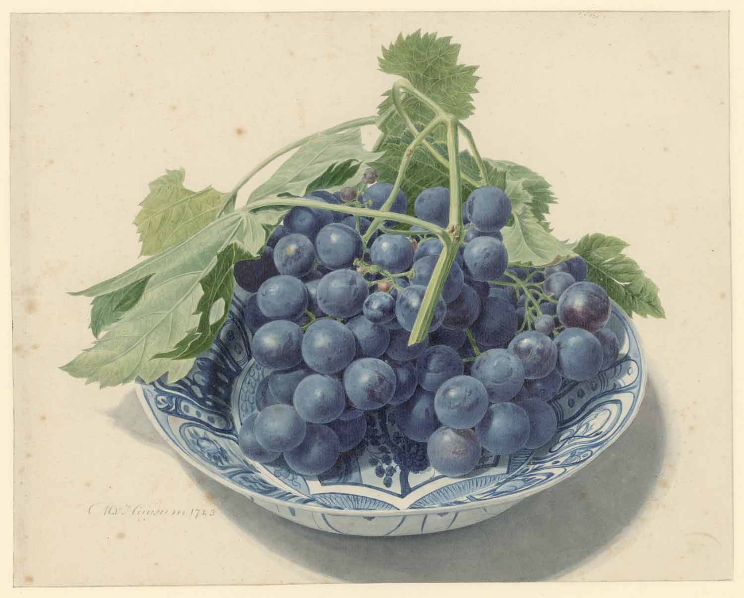 Een tros blauwe druiven op een Chinese schaal