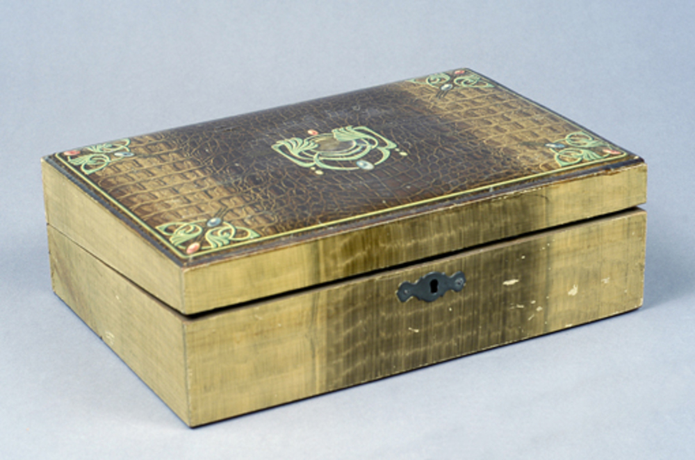 houten schrijfdoos met geschilderde Jugendstillornam...