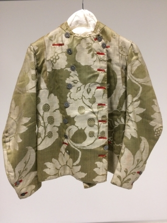 Blauw zijden jak met donkerblauw fluwelen accenten