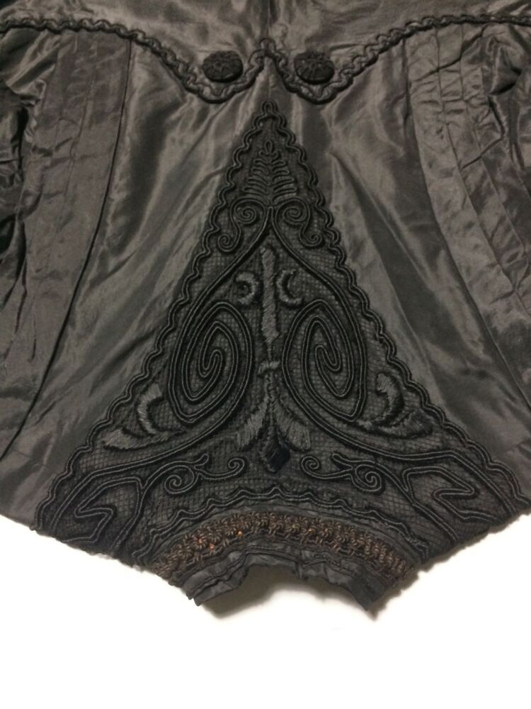Zwarte satijnen jak met rok in s-lijn jak volledig g...