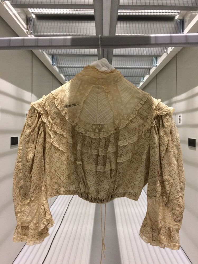Cremekleurig zijden vest met borduurwerk en katoenen...