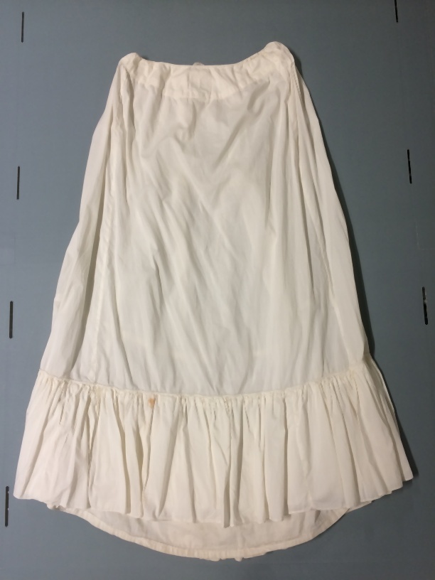 Wit katoenen onderrok met roze/rode strepen in de le...