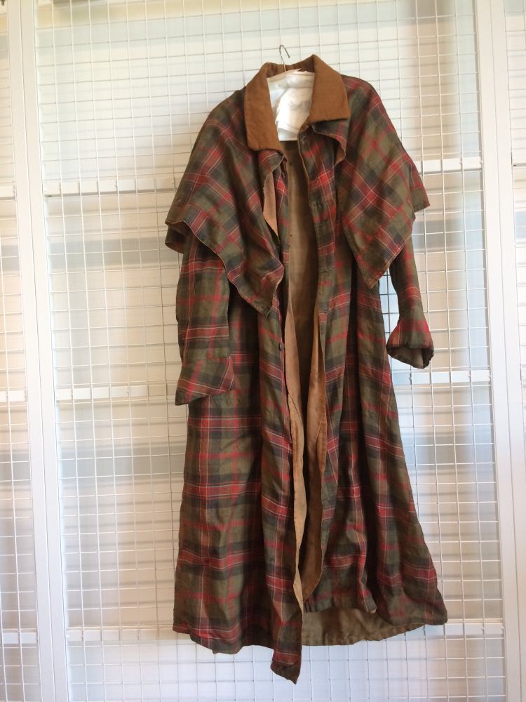 Bruin geruite wollen jas zonder mouwen met cape over...