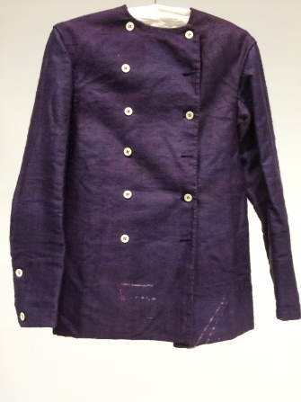 Dikke wollen paarse hemdrok of baeitje met twee rije...