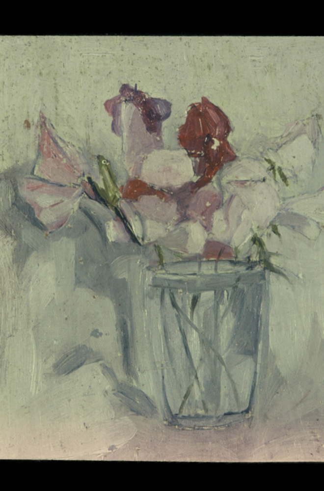 Stilleven met lathyrussen in glas