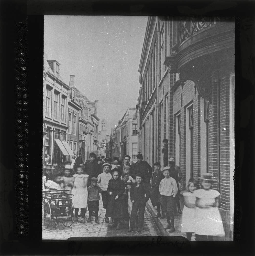 De Bruggestraat met een groep poserende personen