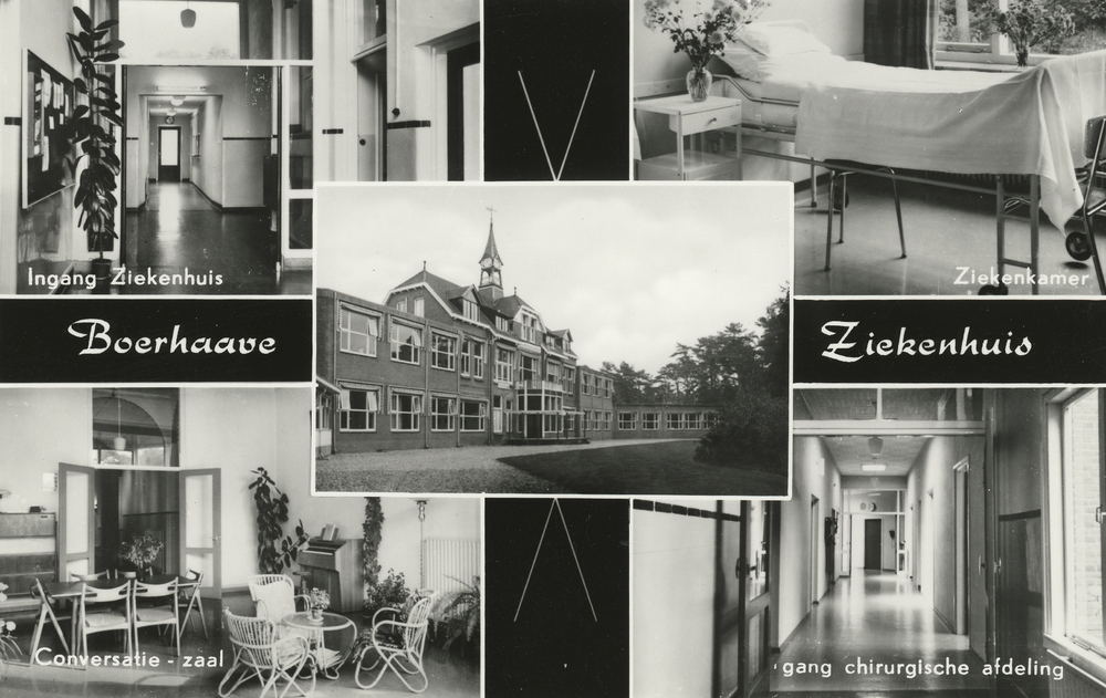 Prentbriefkaart, getiteld 'Boerhaave - Ziekenhuis Ha...