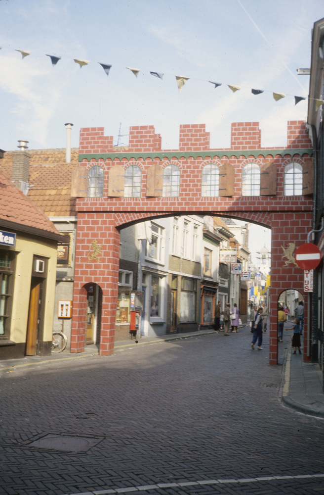 Nagebouwde stadspoort in de Bruggestraat, ter gelege...