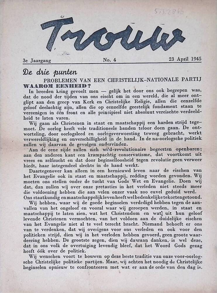 Trouw ( verschillende edities), Trouw 3e Jaargang No...