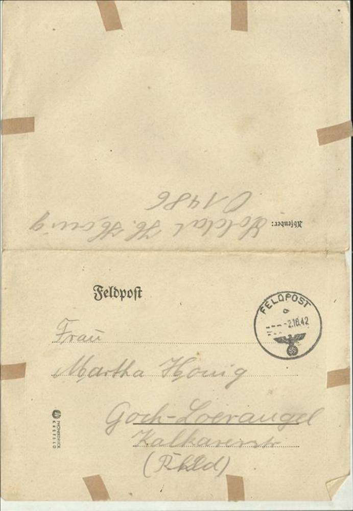 Brief van Heinrich (soldaat) Honig aan Martha Honig ...