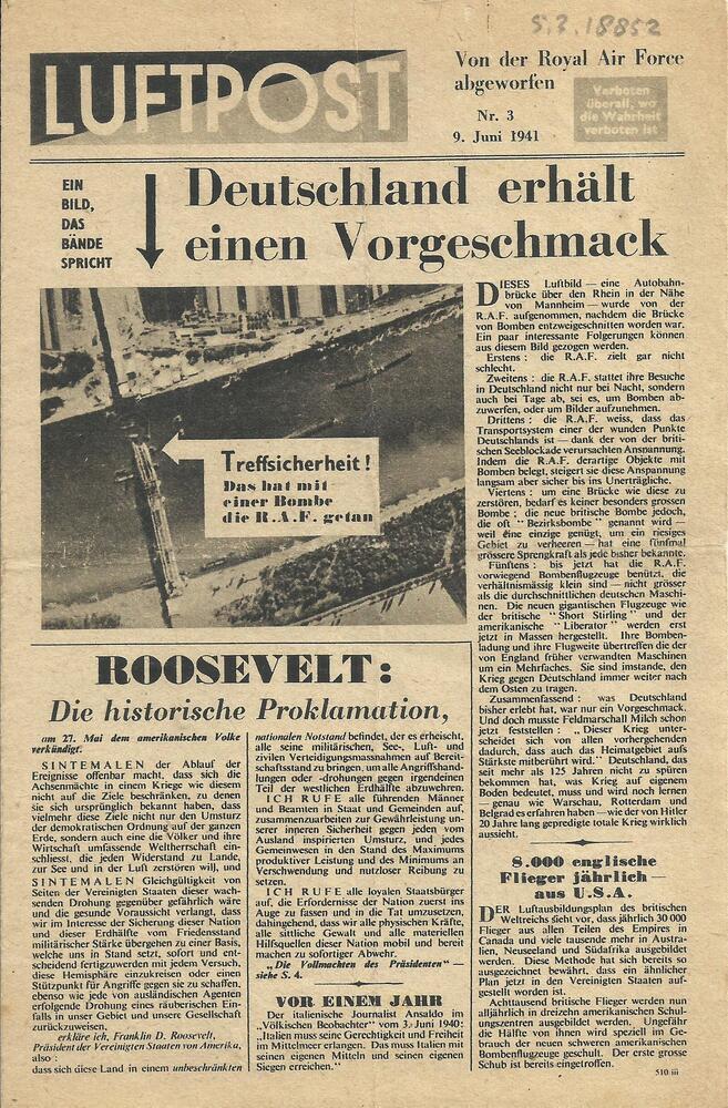Pamflet "Luftpost, von der Royal Air Force abgeworfe...