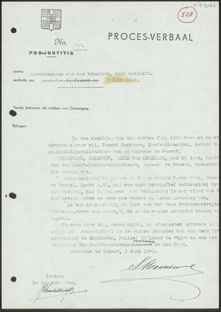 Proces-Verbaal gemeente Gemert 03-06-1942.