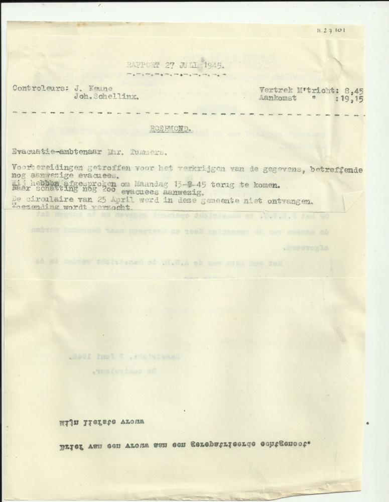Rapport 6 juni 1945 en 27 juli 1945 bezoek Roermond ...