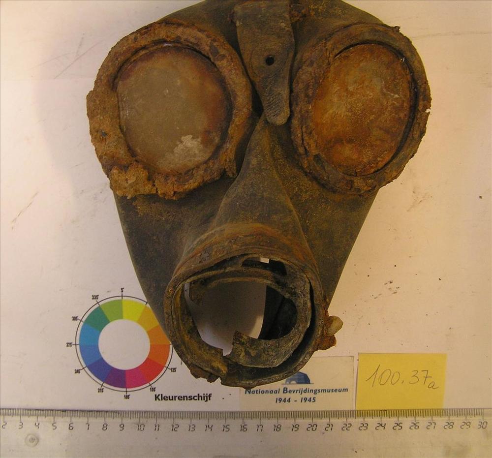 Duitse gasmasker.Aan de achterkant opgedrukt: ebd.