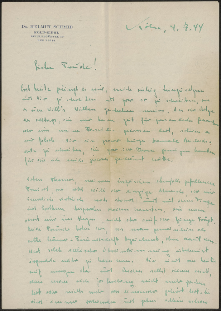 Brief aan Liebe Trude 4.7.'44 Köln