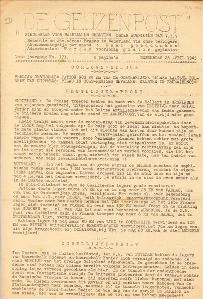 De Geuzenpost 1e jaargang, no. 171, 26 april 1945