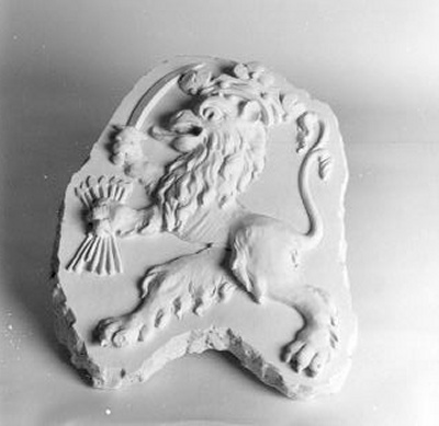 Rechterleeuw van bekroning van binnenpoort van Rasphuis