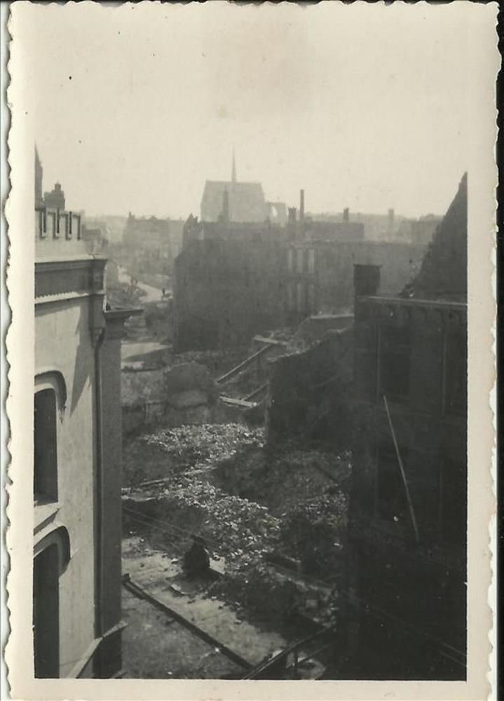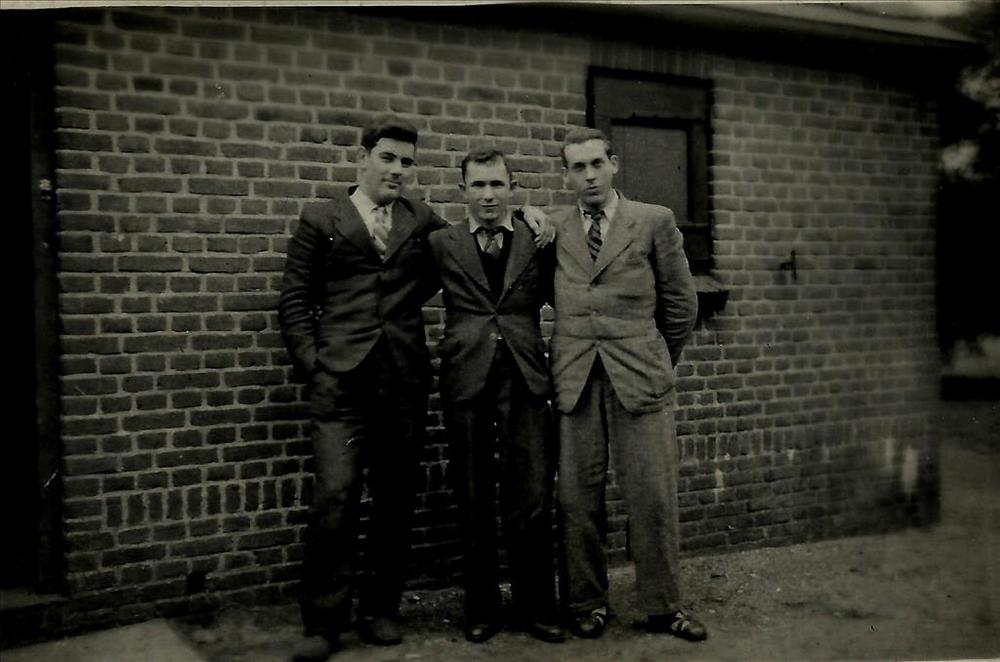 man, burger (geallieerde vliegers ?), stenen muur