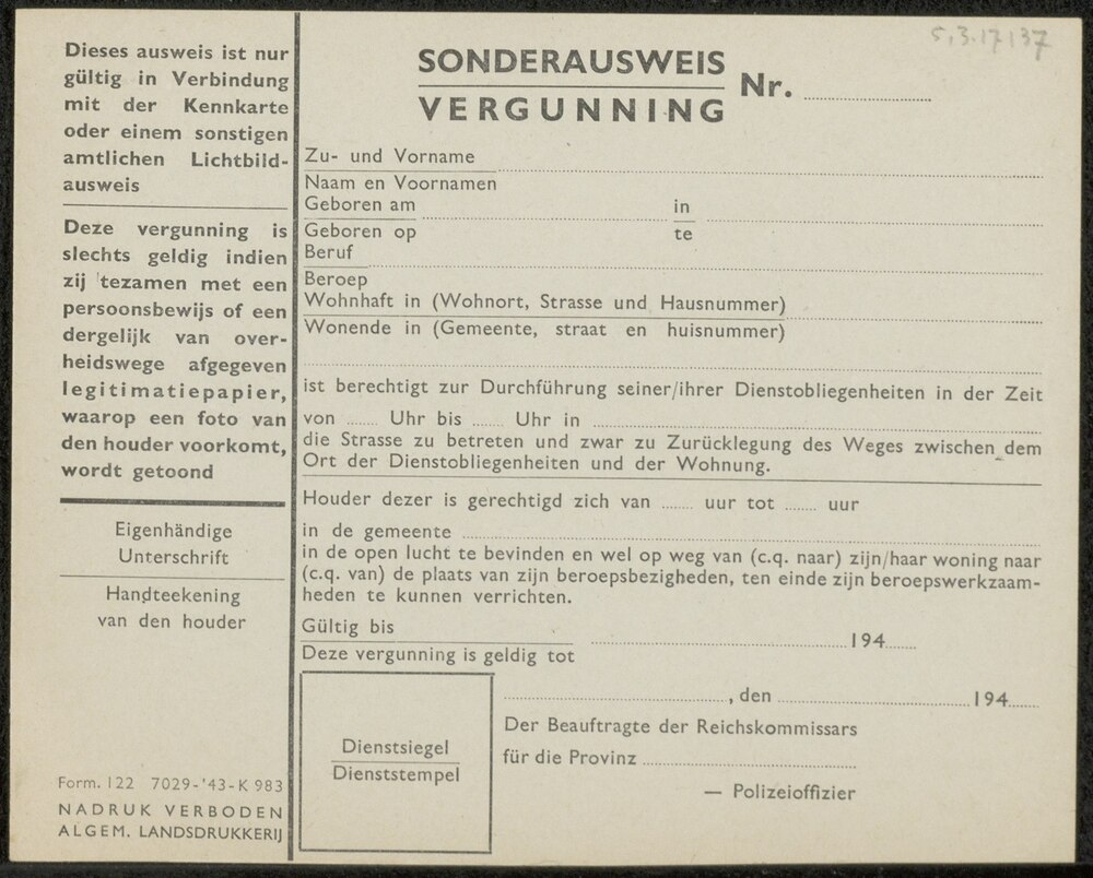 Sonderausweis/vergunning (K.983) blanco