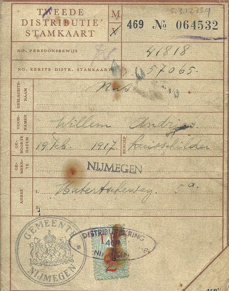 Tweede Distributiestamkaart op naam van W.A. Nas