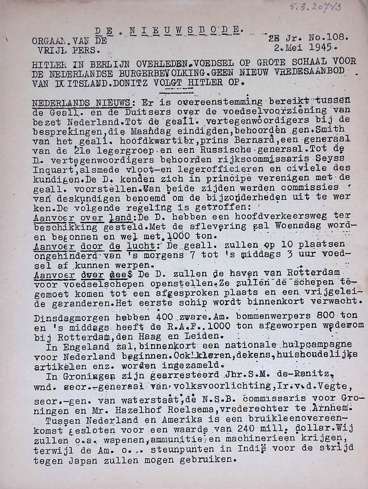 De Nieuwsbode, no 108, 2 mei 1945