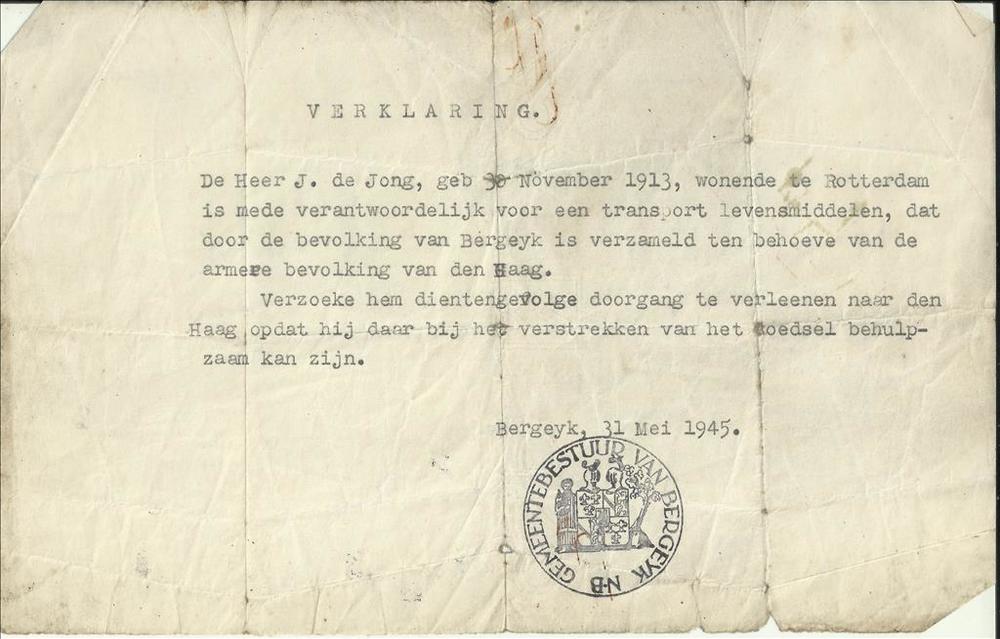 Verklaring dat Jacobus de Jong wonende te Rotterdam ...