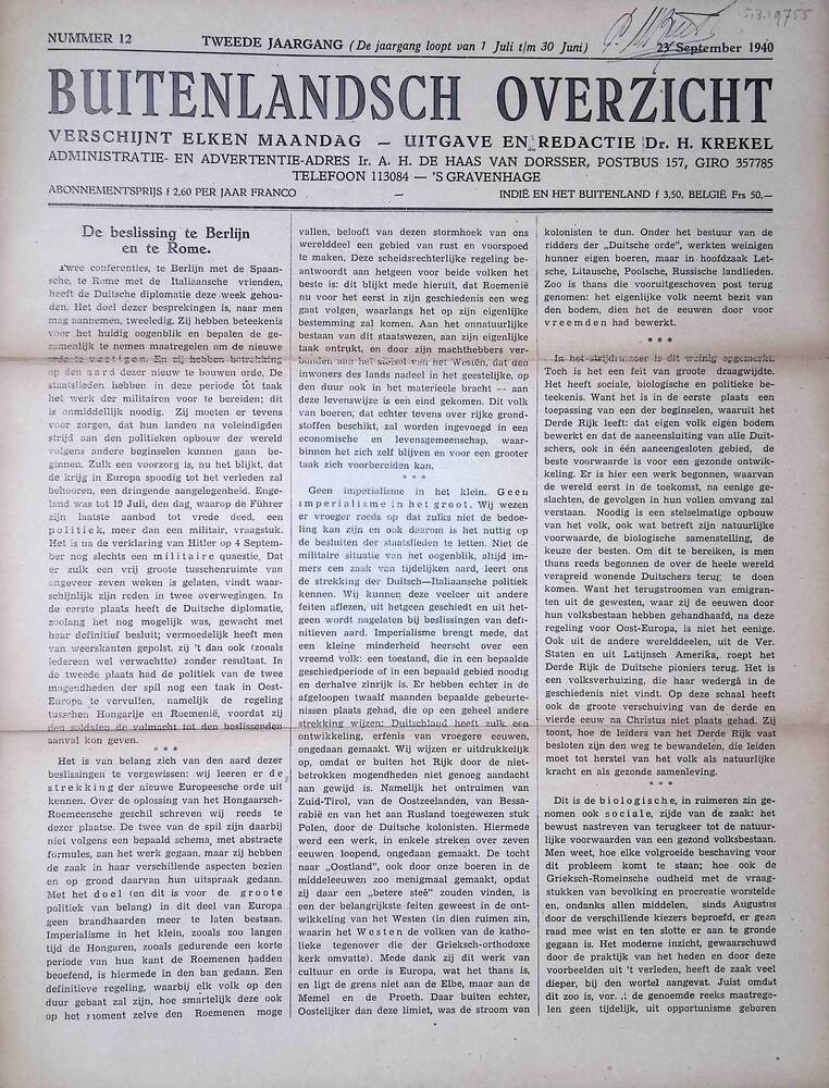 Buitenlandsch overzicht, 23 september 1940