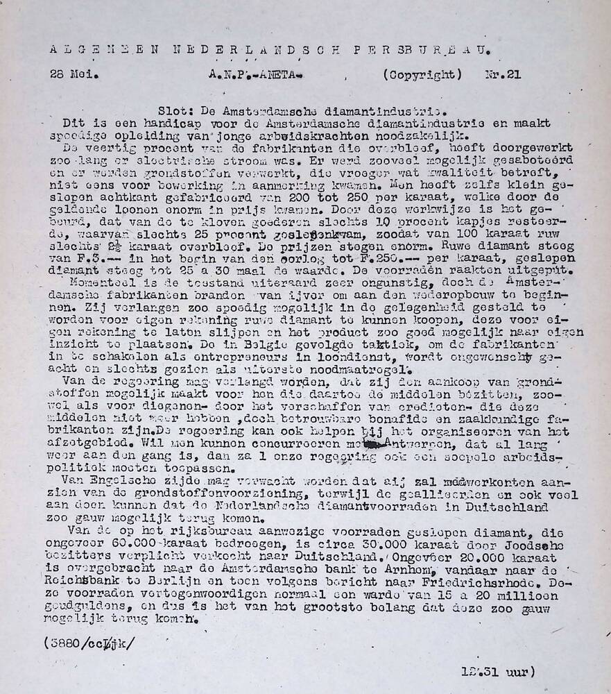 Algemeen Nederlandsch Persbureau, mededelingen, 28 m...