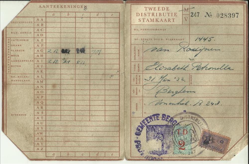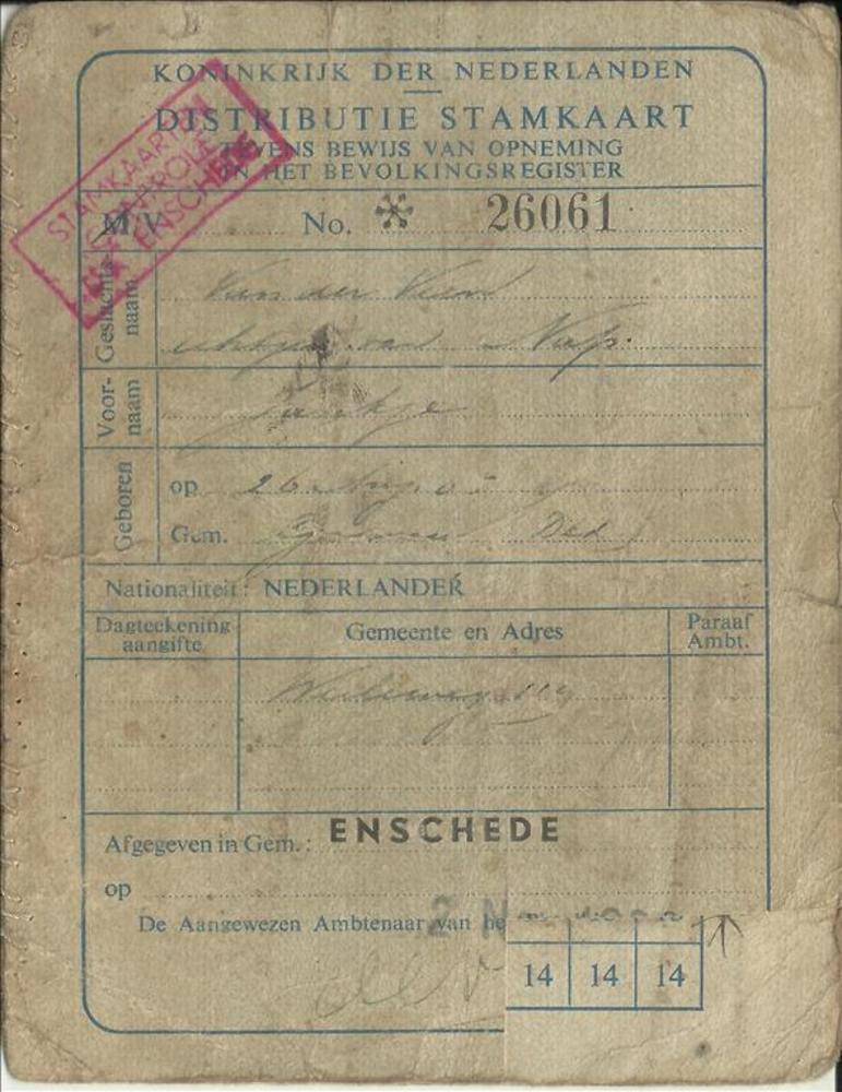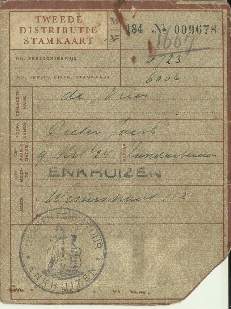Tweede Distributiestamkaart op naam van , de Vries P...
