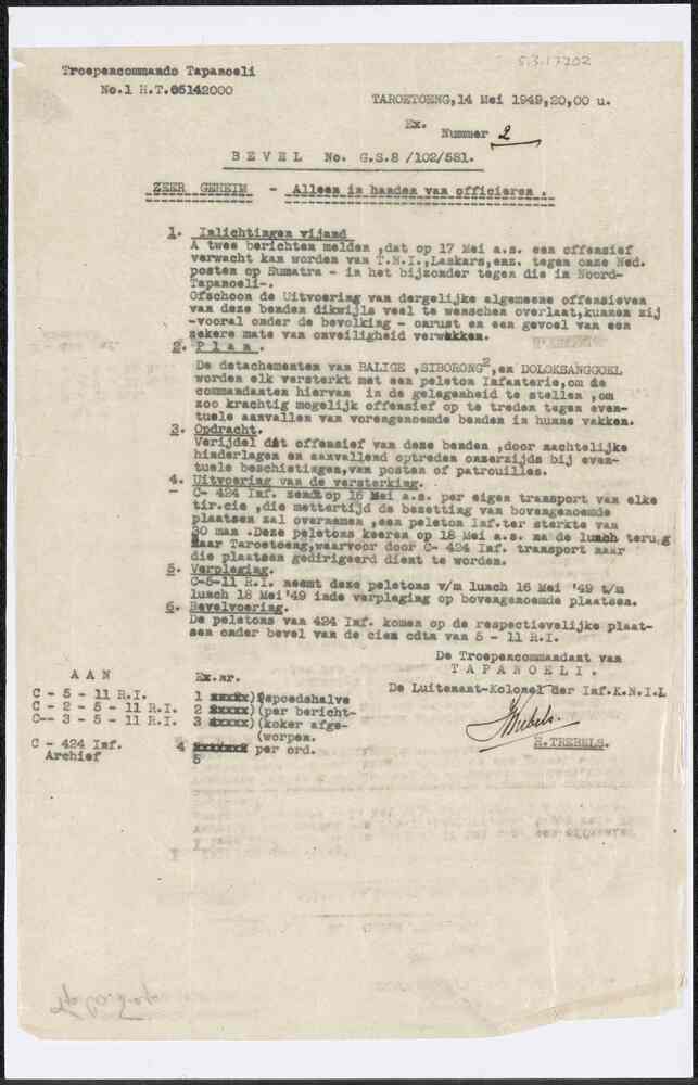 Bevel No. G.S.S. /102/581 van Troepencommando Tapano...