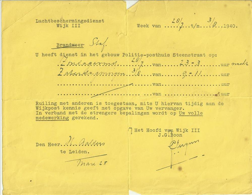 Luchtbeschermingsdienst wijk III te Leiden - 1940
