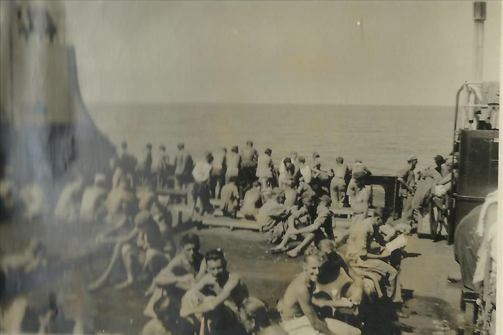 Geallieerde militairen zittend op Duck, St. Annastraat