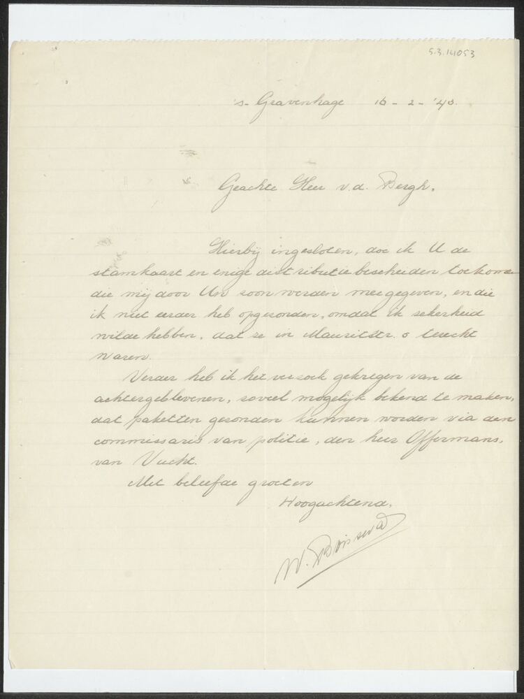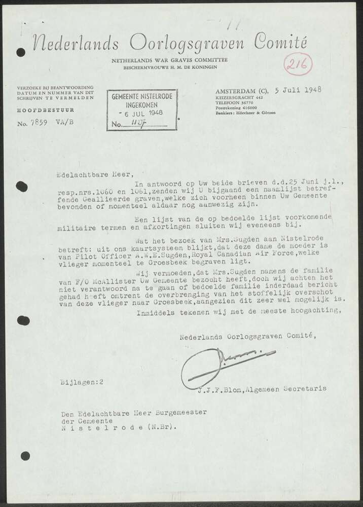 Brief van het Nederlandsch Oorlogsgraven Comité