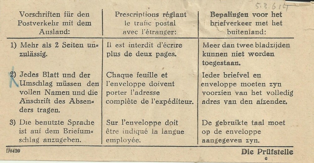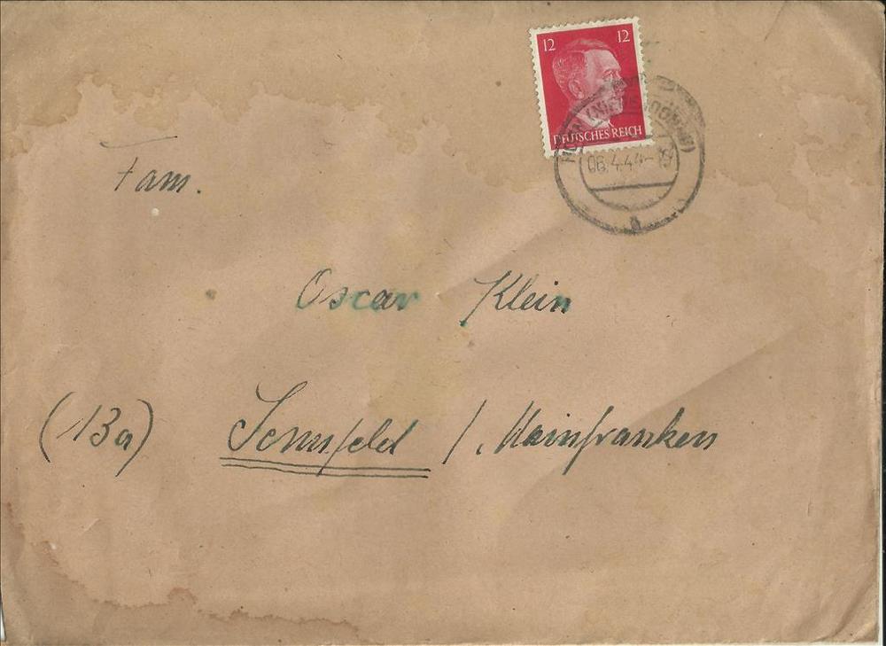 Brief in enveloppe aan de familie Oskar Klein te Sen...