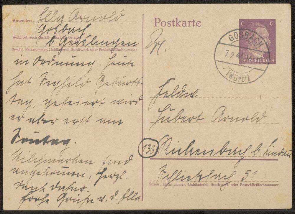 briefkaart aan Hubert van Ella dd 07-09-1944