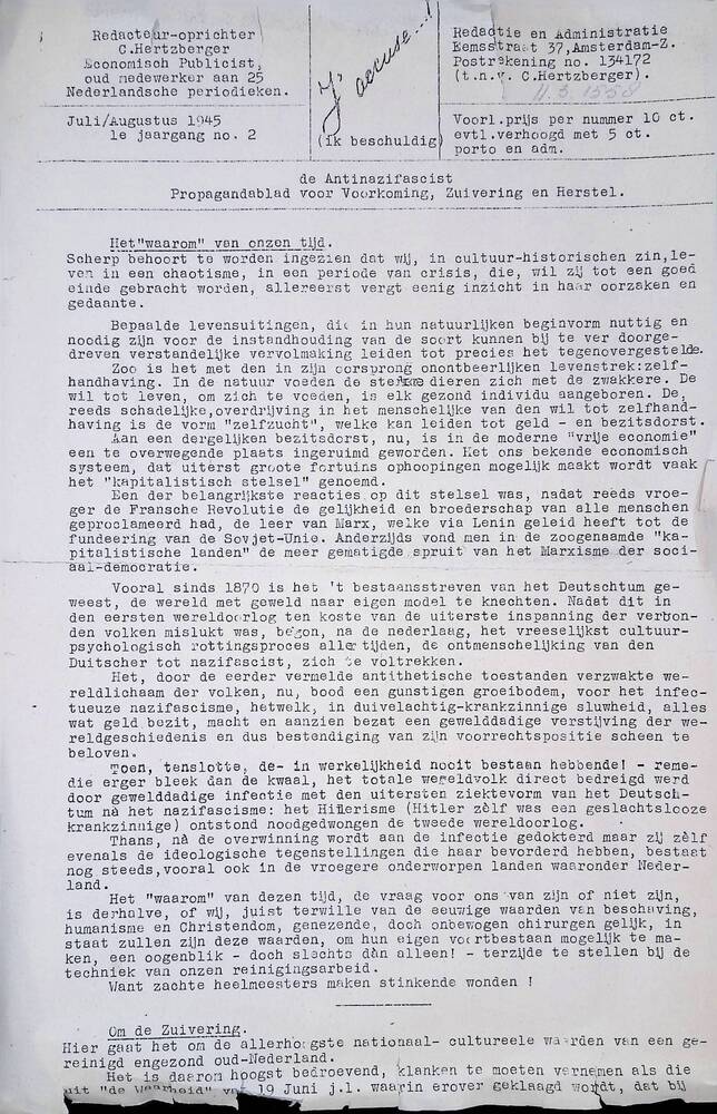 J'accuse De Antinazifascist, juli augustus 1945.