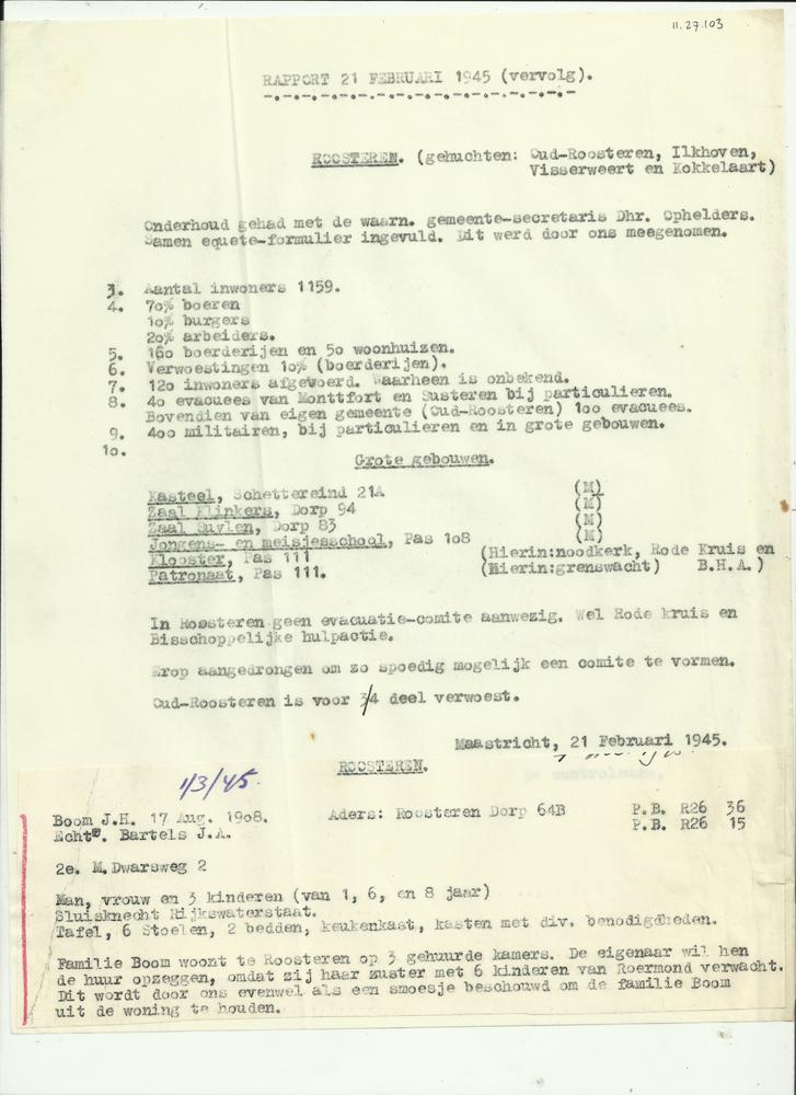 Rapport 21 februari 1945 en 1 maart 1945 bezoek Roos...