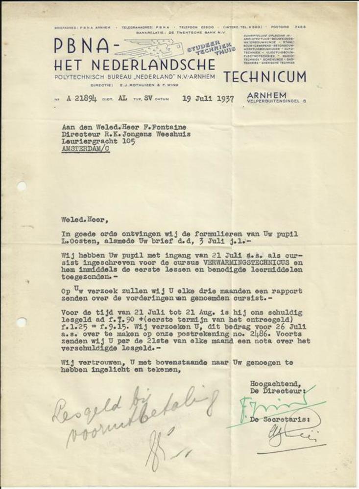 PBNA het Nederlandsch Technicum - brief aan dhr Font...