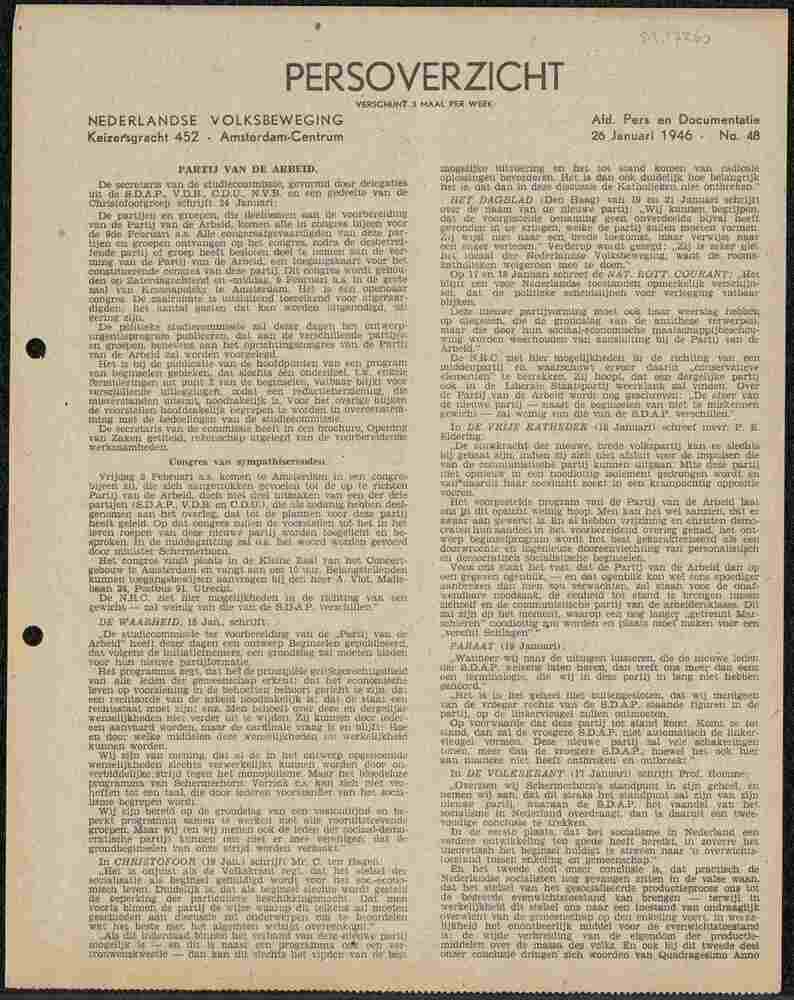 Persoverzicht Nederlandse Volksbeweging, no. 48, 26 ...