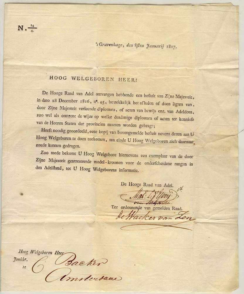 Z.E. den Luitt. Generaal Bn. D.H. Chassé (1765-1849)